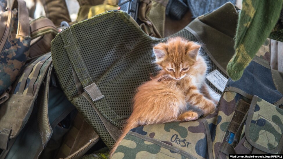 Кошеня, яке приблудилось до бійців з покинутих домівок