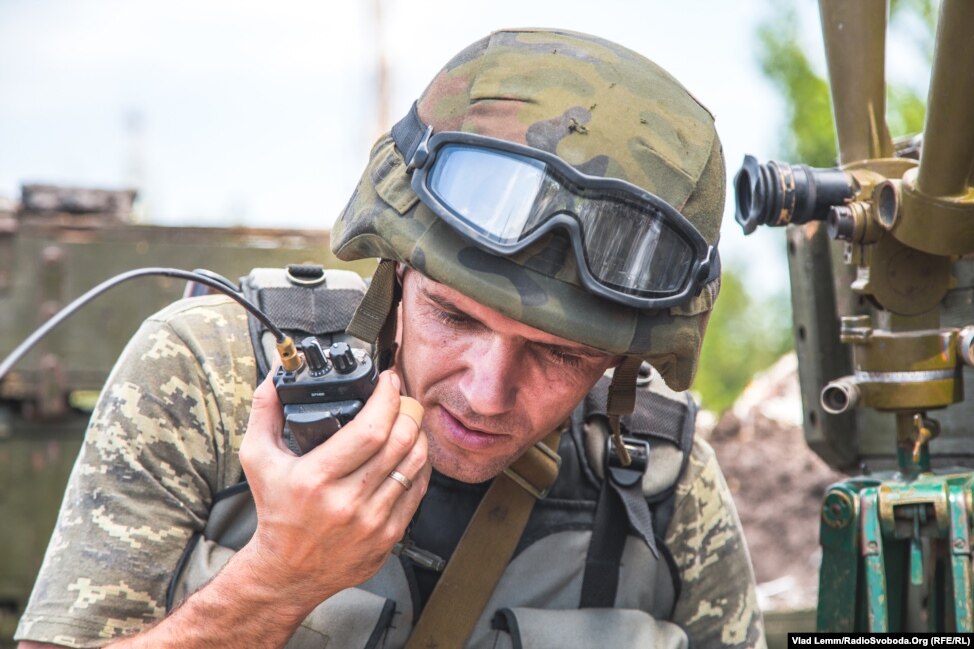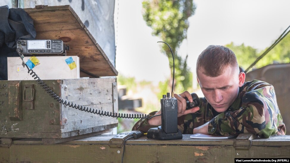 Боєць з позивним «Конвой» з'ясовує обстановку на сусідніх позиціях