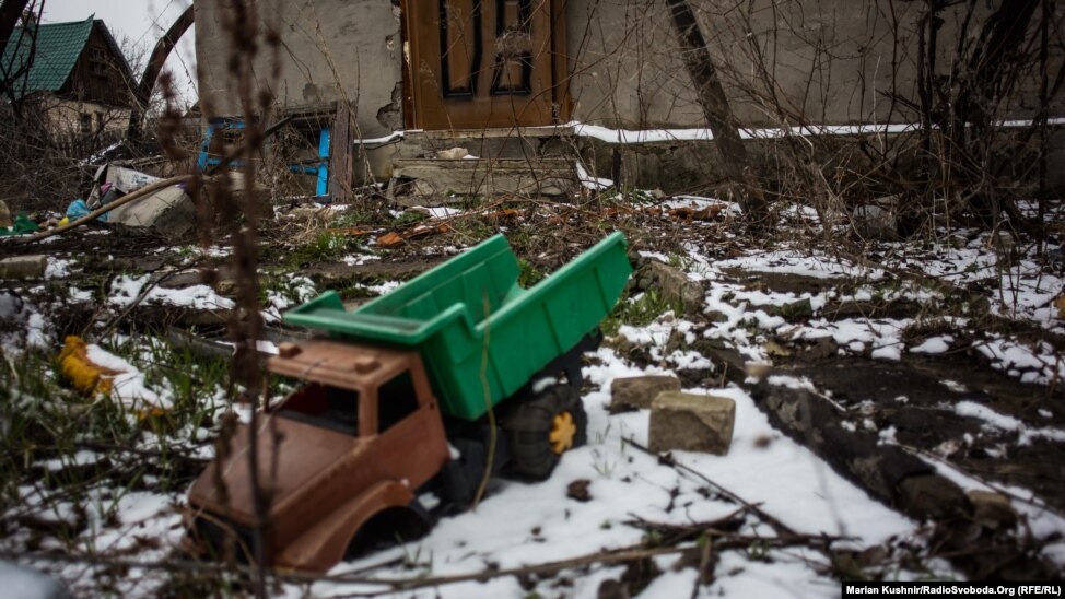 На вулиці біля будинку багато розтрощених іграшок і речей. Чи мародери, чи швидко пакували речі. Вже ніхто не скаже...
