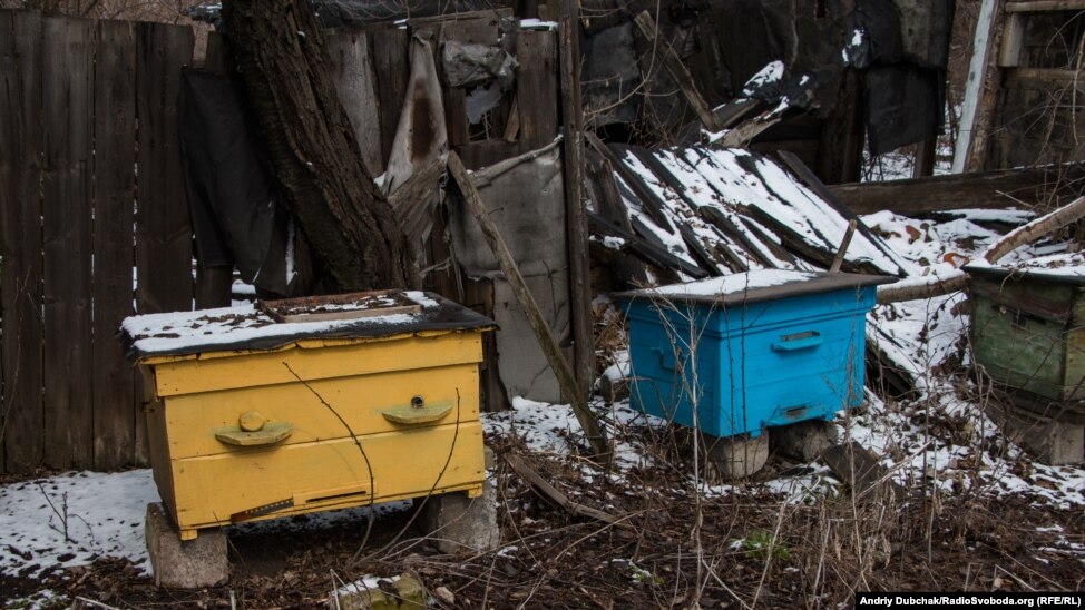 Символічні жовто-блакитні вулики на подвір’ї однієї з садиб говорять про те, що не всі жителі були налаштовані проросійськи