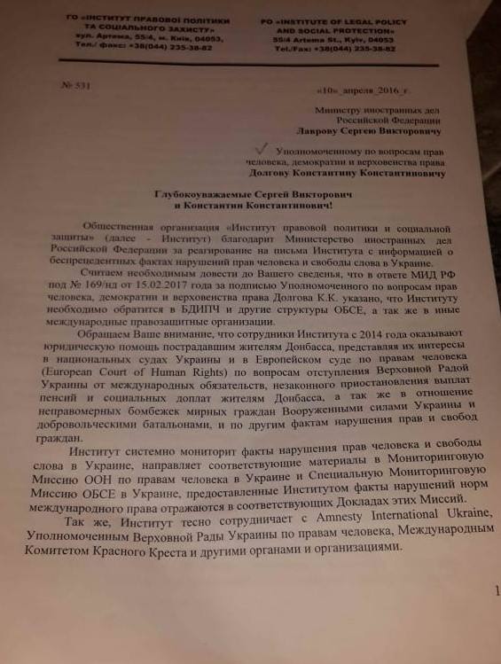 "У этой "законопослушной и честной" гражданки кроме многочисленных документальных материалов и электронных носителей, которые свидетельствуют о ее противоправной деятельности, наши сотрудники обнаружили также письмо к министру иностранных дел государства-агрессора С. Лаврову о необходимости активизации деятельности российских организаций в Украине", - сказано в сообщении.